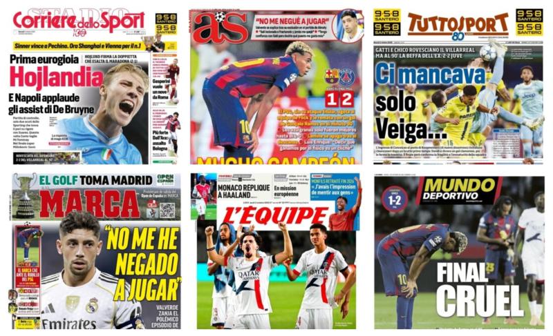 كورة استريم |أبرز عناوين أغلفة الصحف العالمية: “باريس سان جيرمان يهزم برشلونة 2-1 في مباراة مثيرة”